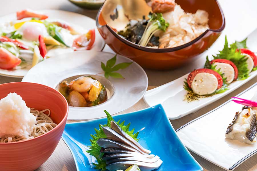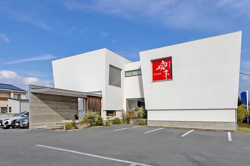 奥京 小瀬店は、明治43年創業。蕎麦店として始まり、現在では、和食から創作料理・アヒージョ、ガレットなどの洋皿に至るまで幅広いメニューをご用意。蕎麦は手打ちで天ぷらは揚げたて、いずれの料理も手間を惜しまず、店内でしっかり仕込み、出来立てをご提供するように努めております。立方体の特徴的な外観が目印で個室も完備。様々なシーンでお立ち寄りください。